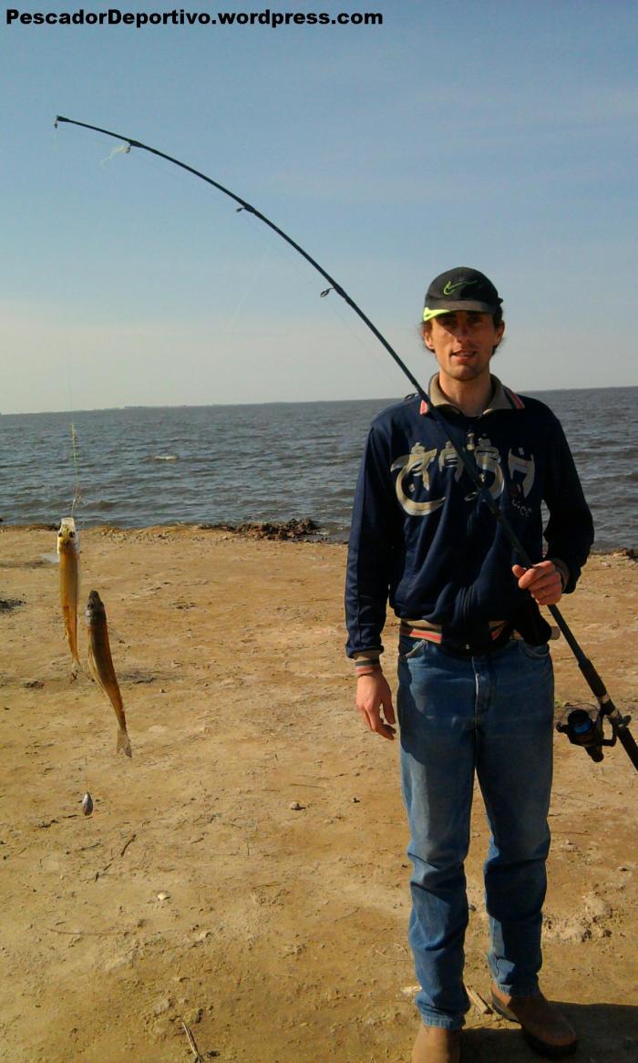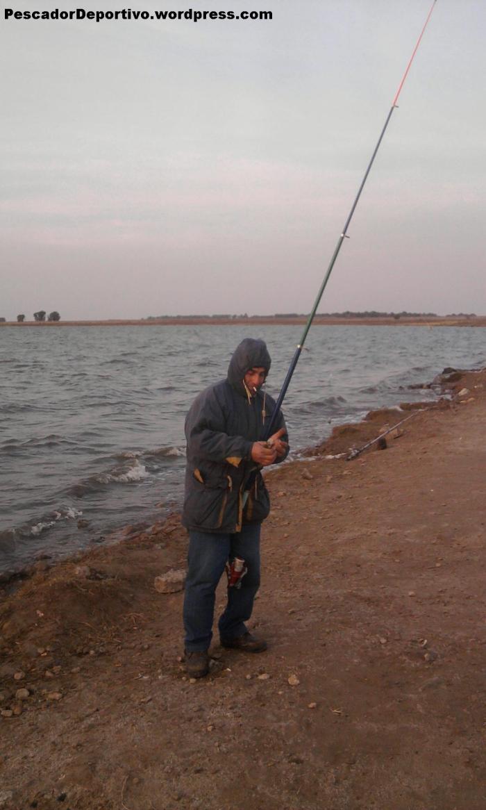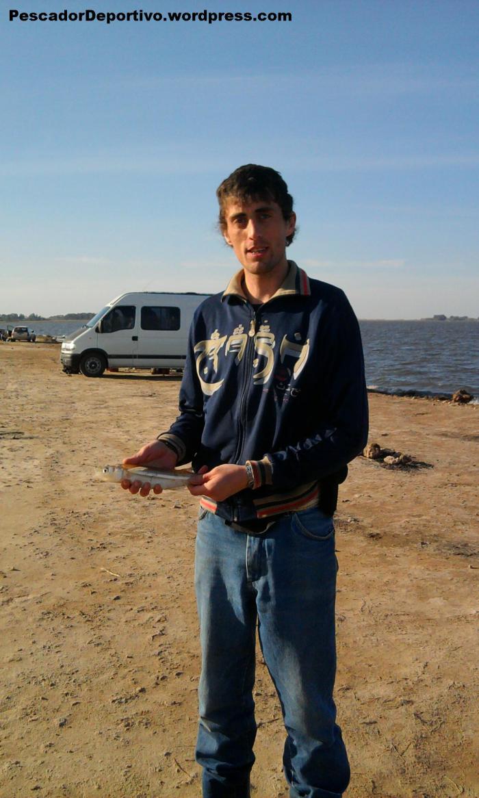 No bien llegamos notamos que íbamos a tener al viento en contra, con todo lo que eso implica; aun así, pudimos enseguida comenzar a pescar. Nos alojamos en el mismo sitio las 8 horas de pesca, y rindió bien. Yo pesque 15 pejerrey y un dientudo, Lucas 10 pejerrey y su suegro 28, 1 de muy buen tamaño (35 centímetros).