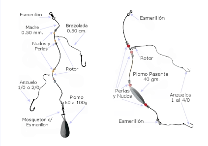 Equipo a usar: generalmente liviano, así sentimos mejor la «pelea». Usar leaders, anzuelos mustad del 8 al 14.