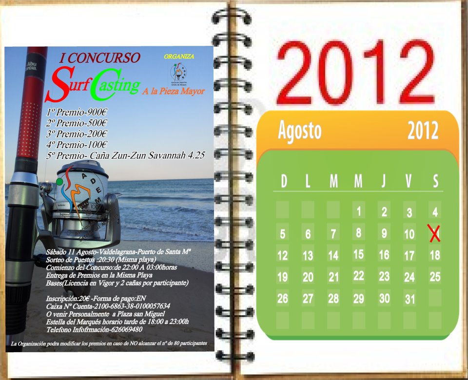 El 11 de agosto de 2012 se celebrara en la Playa de Valdelagrana, Puerto de Santa María, España, el 1º Concurso Surf Casting a la pieza mayor con 900 euros de premio para el que resulte ganador. A continuación, mas detalles.