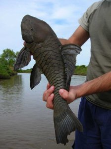 4. En México se le conoce como pez diablo, suele ser plaga porque aquí no existe un depredador para el, se recomiendo que al atraparlo no lo regreses pero el problema es que según tampoco se come, se dice que es plaga porque se come la hueva de las lobinas y demás especies endémicas de la zona. eso es lo que se dice no soy experto.