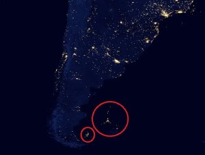 Nos están depredando! Esta es parte de una imagen compuesta por la NASA en Noviembre 2012 de muchas fotos satelitales, mostrando como es el planeta si fuese totalmente de noche. Recorté y remarqué una parte para que vean: Las nada famosas ciudades flotantes de miles de barcos pescadores de calamar (poteros) que están depredando el límite de la plataforma continental Argentina. Son tantos barcos que se ven desde el espacio, ya que el calamar se pesca de noche atrayéndolo con la luz. Como pueden ver en la foto, estos barcos emiten más luz al espacio que casi todas las ciudades argentinas, incluyendo centros urbanos como Córdoba o Rosario. DIFUNDIR!