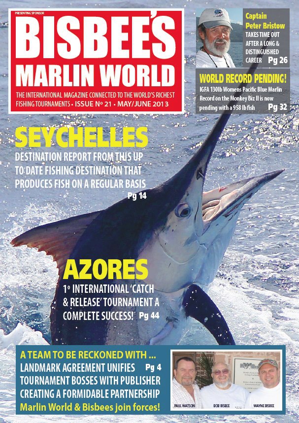 The new look ‘Bisbee’s Marlin World’ is currently in production and will be published online in 1st May 2013. Not just for the ‘Bisbee’ tournaments, it will continue to give publication space to other international fishing tournaments and will continue to be open to articles submitted by readers and editorial staff on a diverse selection of subjects ranging from conservation issues, personal fishing experiences, techniques, tackle, boats, tournament results and other matters that fishing fanatics want to hear and read about … don’t forget to subscribe for free at http://www.marlinworld.tv/.