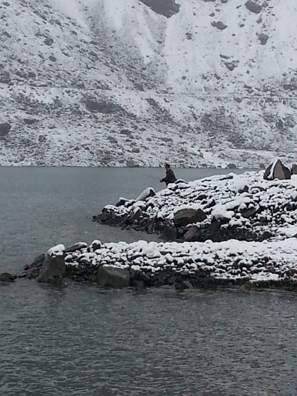 Espectacular pesca de truchas, mas que nada por el paisaje y que fue realizada mientras nevaba, realizada por Daniel González en el Cajón del Maipo, Santiago de Chile, Chile, al inicio de la temporada.