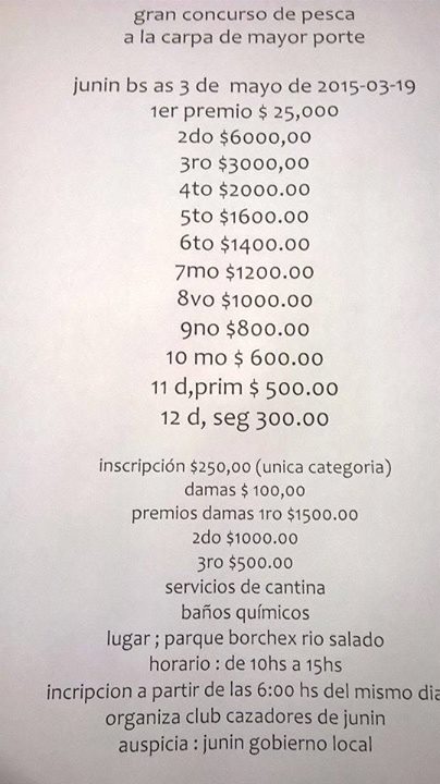 Gran concurso de pesca «a la carpa de mayor peso» en Junin 3 de mayo de 2015