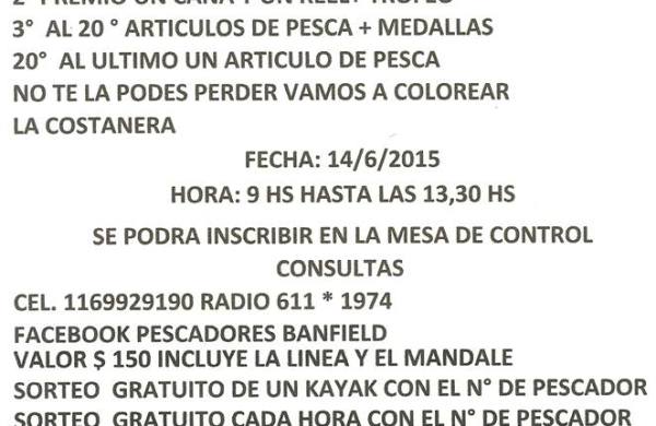 Amigos el CLUB DE PESCA Y CAZA BANFIELD y CLUB DE PESCADORES LINEA GRAL. ROCA, vamos a realizar un concurso con BOYAS MAURI el día domingo 14/6/2015 de 9 a… Leer más Concurso «Al pejerrey mayor con linea de flote con mandale, caña y carnada libre» – Banfield →